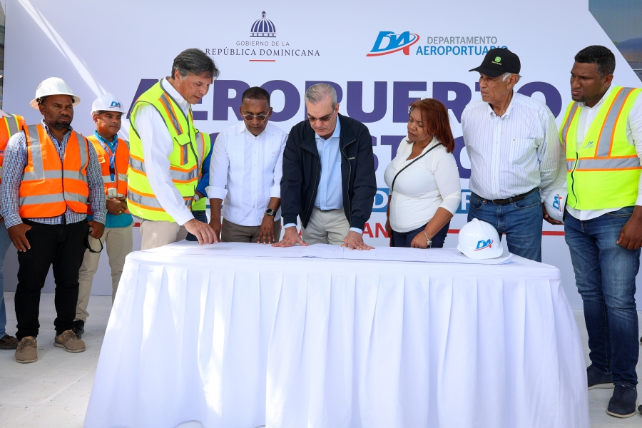 Abinader llegó a la 2:00 de la tarde a los terrenos donde operará la terminal, ubicados en la comunidad Barranca, donde fue recibido por el director del Departamento Aeroportuario (DA), Víctor Pichardo; autoridades locales, e ingenieros contratistas, para recibir las explicaciones técincas de la obra.